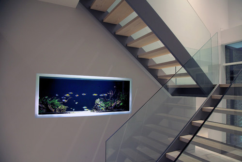 階段下スペースを水槽(アクアリウム)にするアイデアはそこそこあるみたいです。
